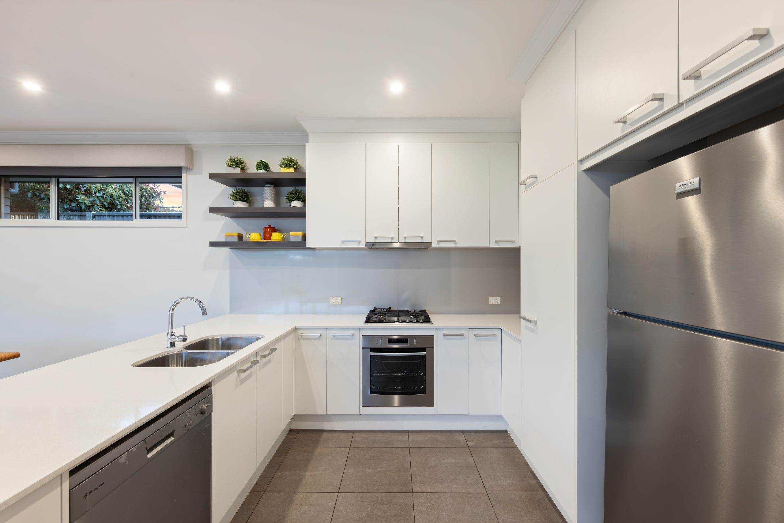 - Premium stainless-steel kitchen suite, including oven, gas cooktop, and fridge
