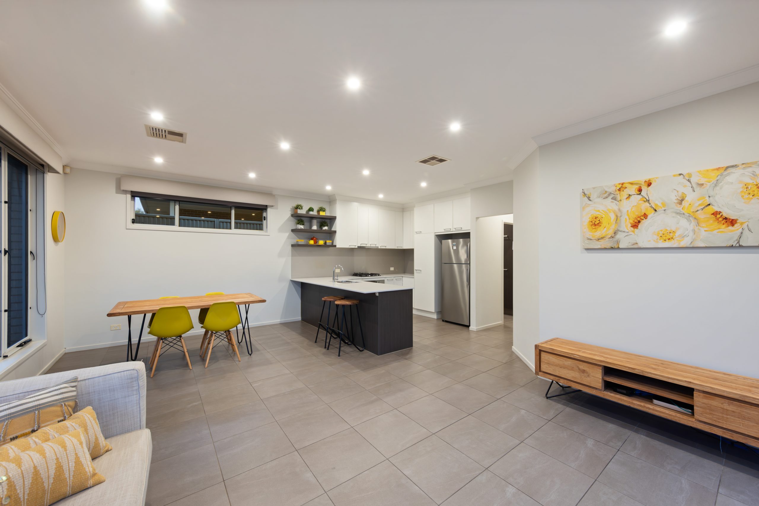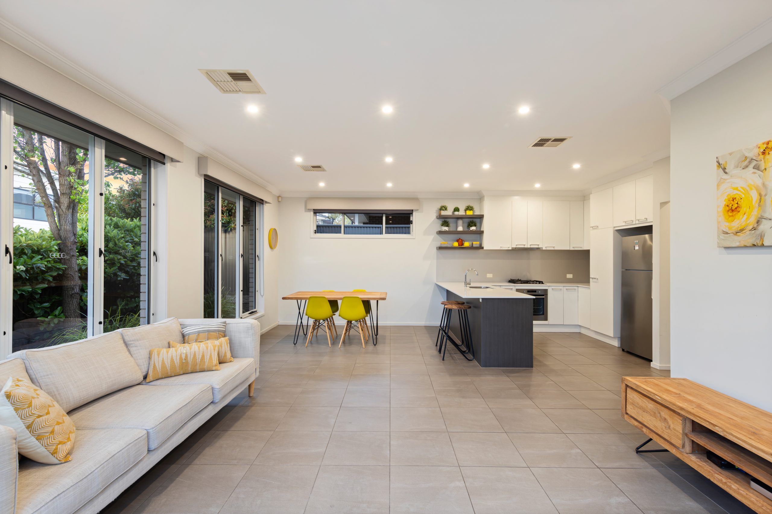 With its sparkling central hallway leading to easy-care tiled floors, soaring 2.7m ceilings, and generous living spaces, this residence is tailored for growing families, couples, retirees, or savvy individuals seeking a low-maintenance lifestyle.